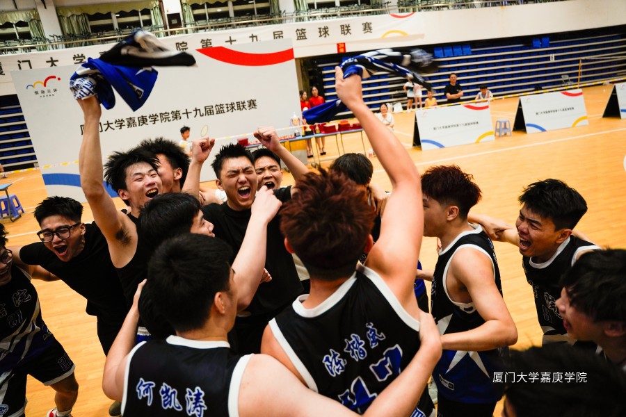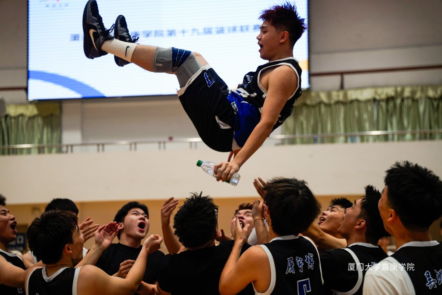 攝于籃球聯(lián)賽決賽,展現(xiàn)了同學(xué)們?cè)诒荣悤r(shí)的拼搏精神,以及勝利后的慶祝。