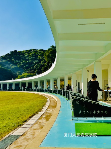 藍(lán)道映青山,學(xué)子握桿遠(yuǎn)眺,嘉庚的運(yùn)動(dòng)活力與自然共融。
