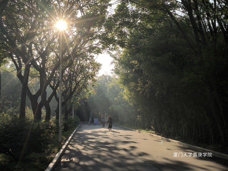 剛來到嘉軍訓時,每天都要六點多起床,嘎吱嘎吱騎著小綠從南區(qū)趕往北區(qū)。某一天早上,在到訓練場地前,突然回頭看到陽光傾瀉