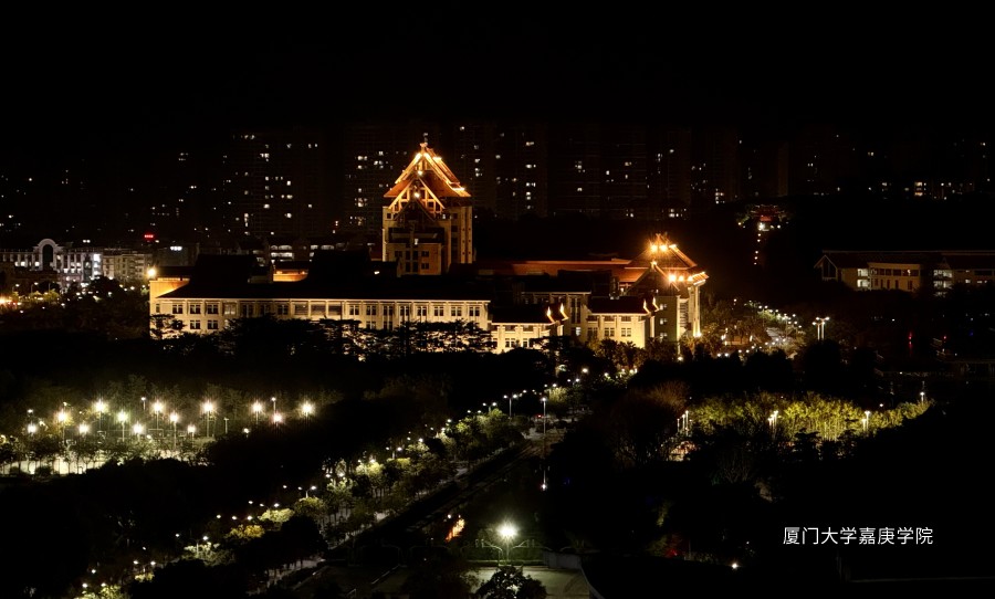 夜幕垂落,廈門大學嘉庚學院主樓群在夜色中盡顯恢宏。