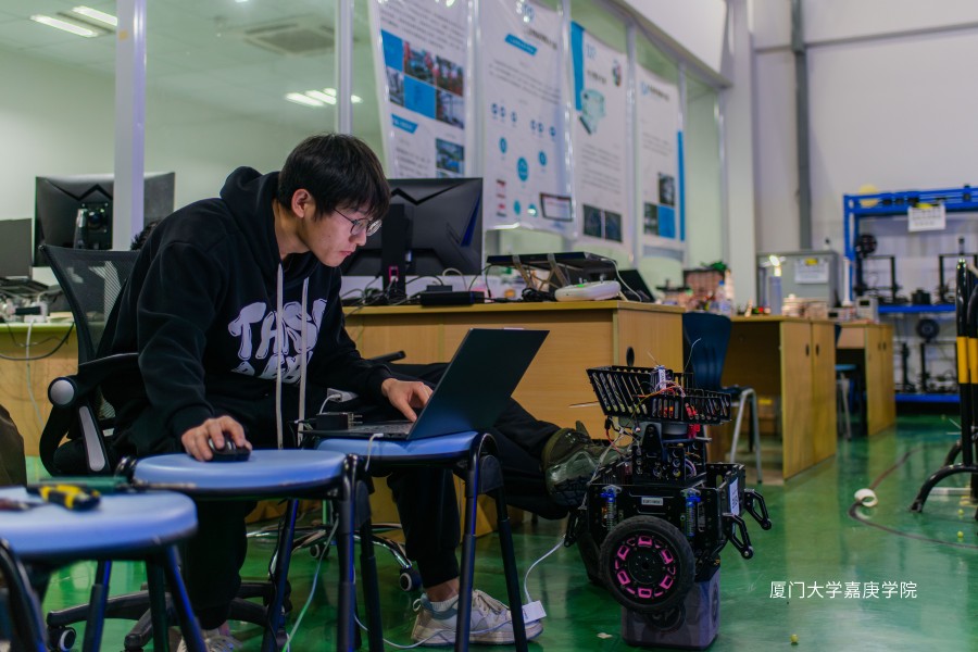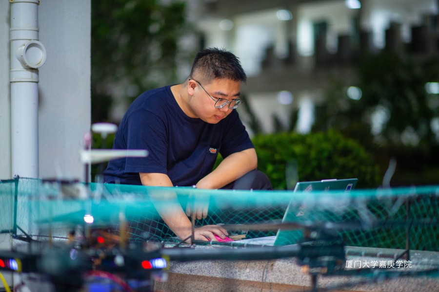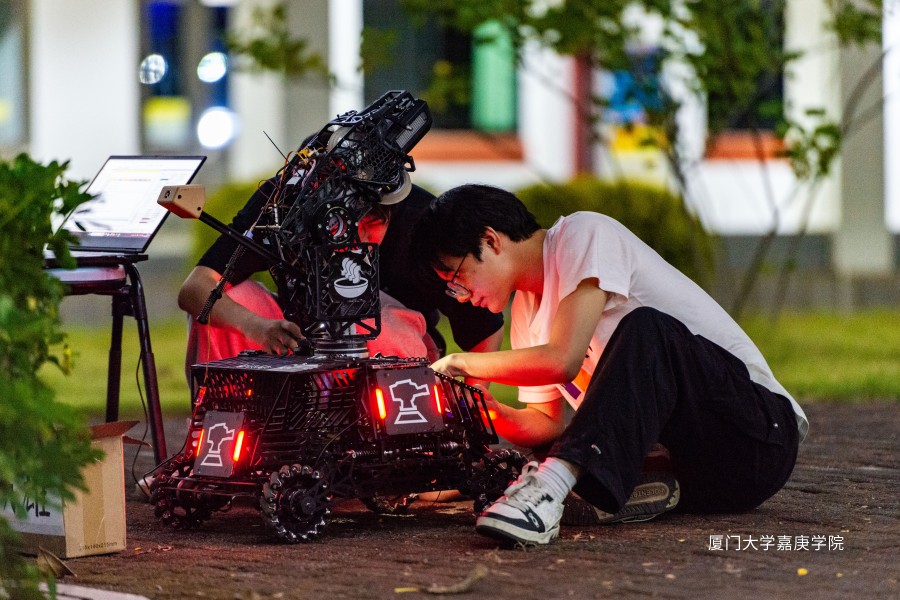 比賽前夕,嘉庚學(xué)子緊張地做著最后的調(diào)試