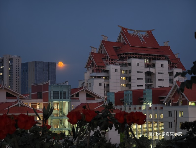 夜幕低垂,圓月懸于嘉庚學(xué)院建筑群上空。紅頂白墻的嘉庚式建筑,在月光與燈光交織下,更顯典雅。夜晚的校園,少了白日喧囂,多了份靜謐。學(xué)子們或在教室自習(xí),或于宿舍研討,月光下的嘉庚,承載著無數(shù)逐夢身影,默默守護(hù)著青春夢想。
