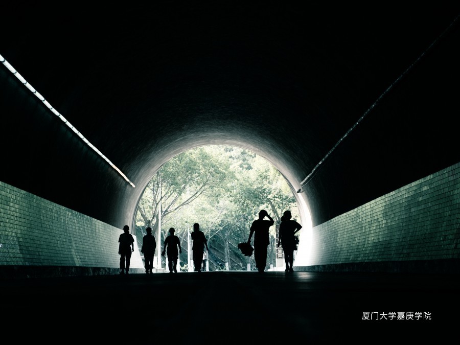 學校隧道里的多人剪影,好像在給我們帶來了希望之光。