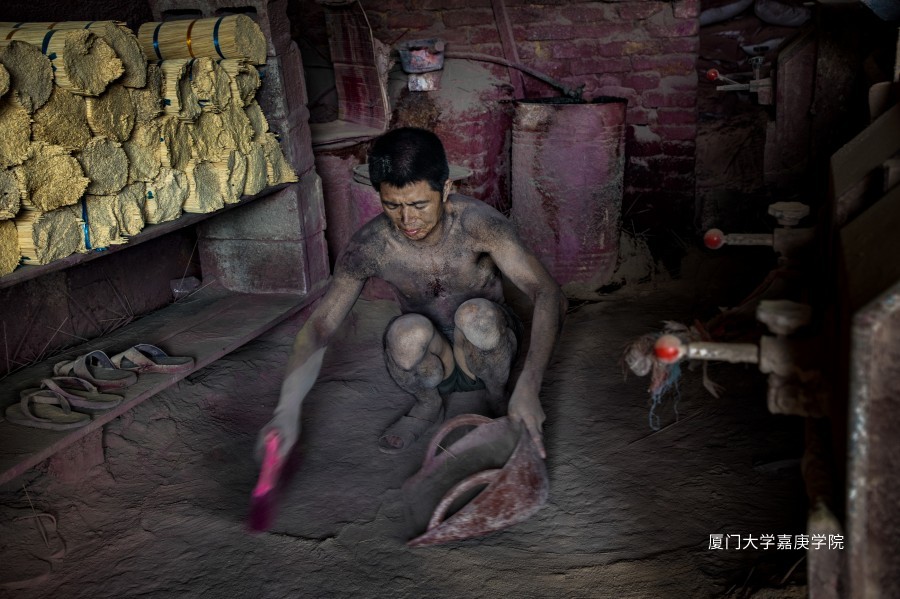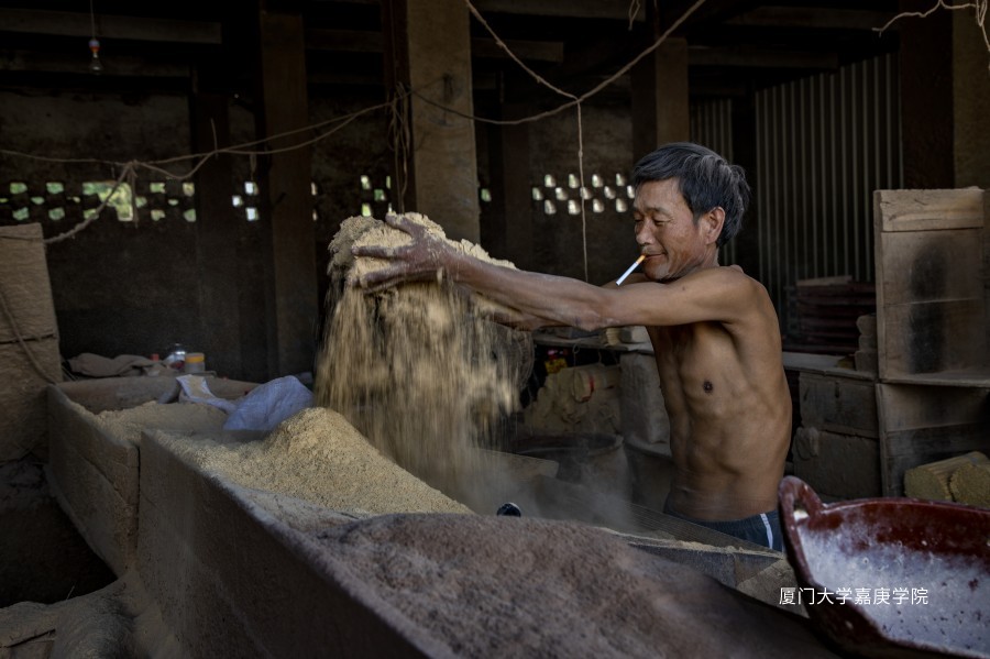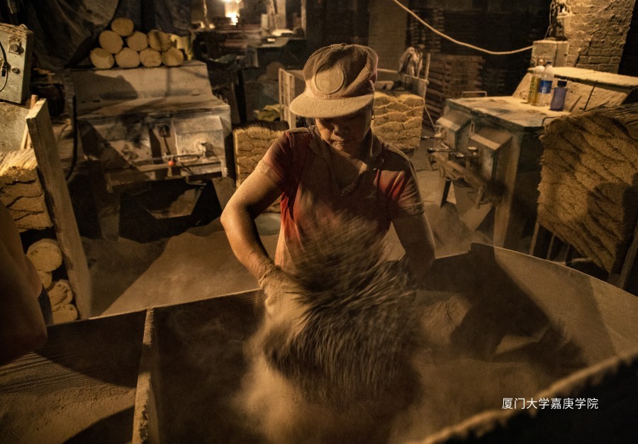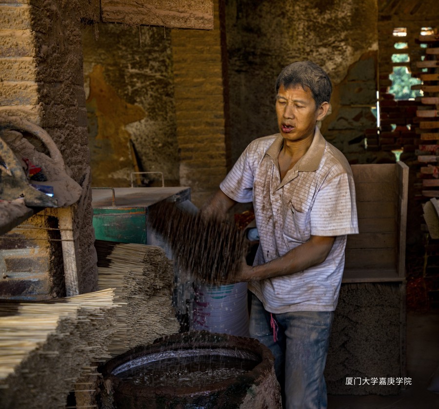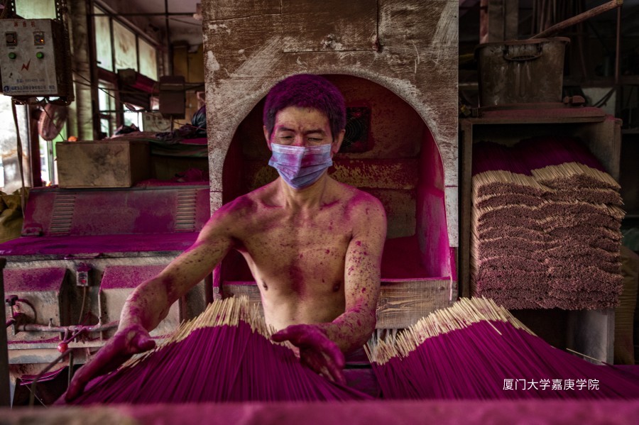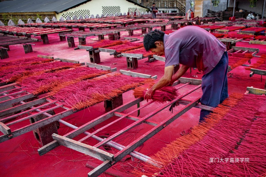 工廠的工人在按照傳統(tǒng)的制香工藝進(jìn)行工作。