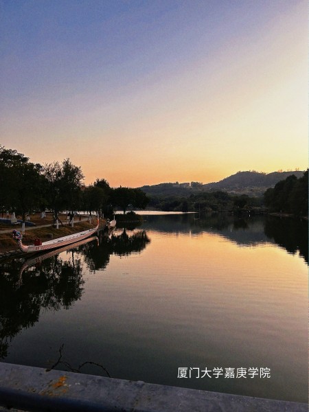 黃昏湖畔龍舟靜,山巒映天嘉園情。