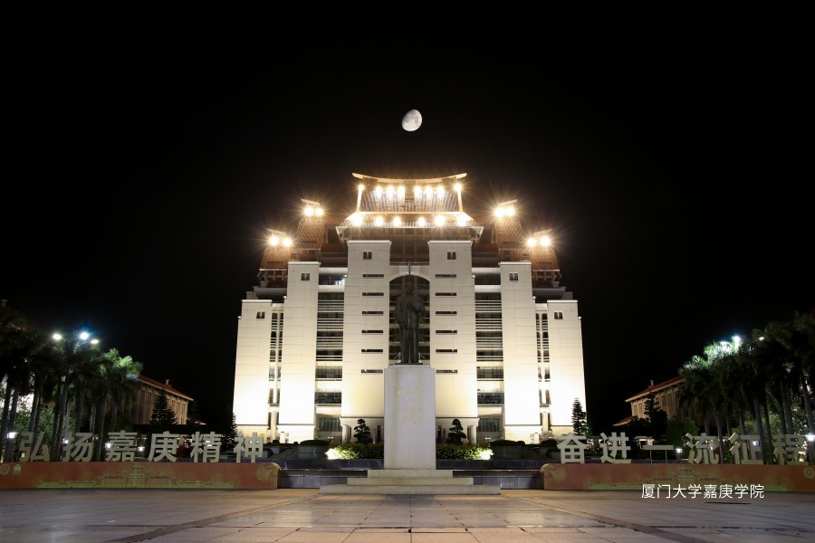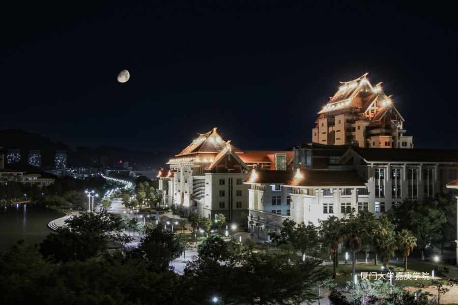 當夜幕低垂,盈凸月點綴天空時,亮燈的主樓群在黑暗中散發(fā)出迷人的光芒。如同一顆閃耀的明星,照亮著“嘉”園的面孔。