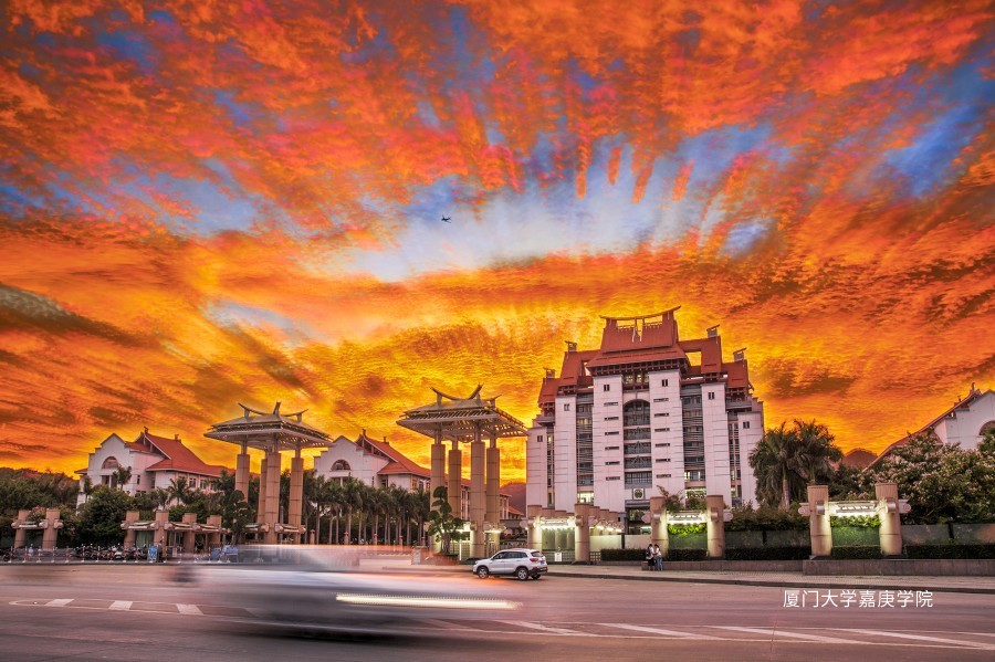 火燒云映紅半邊天,預(yù)示著嘉庚學(xué)院的事業(yè)紅紅火火,蒸蒸日上。