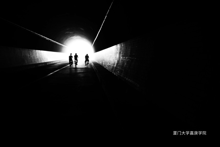 拍攝過(guò)無(wú)數(shù)次的保研隧道,沒(méi)有一次滿意的。一次偶然下課時(shí)分路過(guò)保研隧道,幾位同學(xué)騎車搭伴路過(guò),拍下了這幅圖。