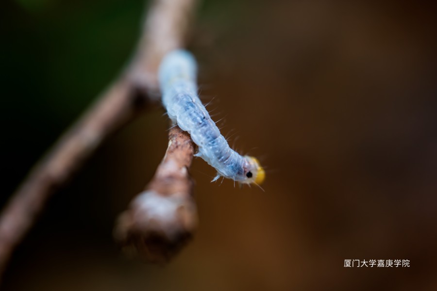 湖畔的枯枝落葉里,一只晶瑩剔透的小蟲抬頭