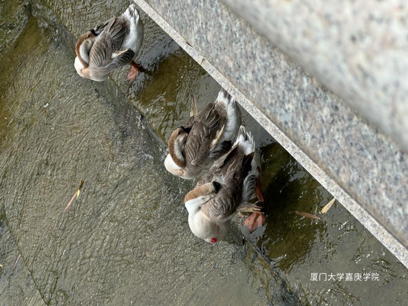 偶然朝橋下看去,發(fā)現(xiàn)獅頭鵝們正在橋下午休
