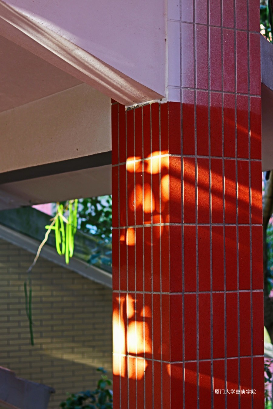 下午的陽(yáng)光透過(guò)屋檐,在紅墻上成為了直角三角形?!豆獾男螤睢?/p>