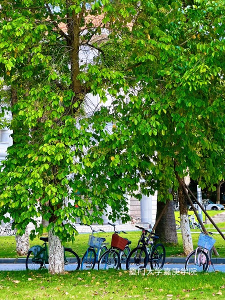 綠葉垂蔭,單車靜候,嘉庚學子的奮斗時光,藏在這樹影斑駁里。
