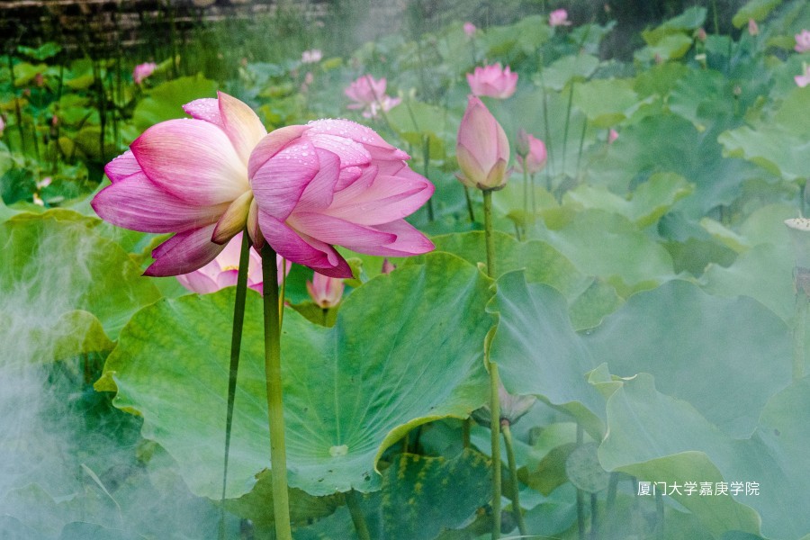 爭奇斗艷,由四副圖片組成,它們?yōu)榧胃龑W(xué)院最具代表的四種花卉,分別為黃花風(fēng)鈴木、荷花、玉蘭以及鳳凰木。它們姿態(tài)各異,色彩奪目,表現(xiàn)出了嘉庚學(xué)院的多彩校園生活。