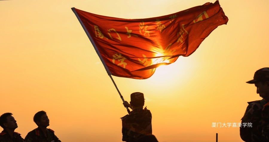 迎著朝霞,揮舞旗幟,我立于山頂,心中的夢想不曾忘記