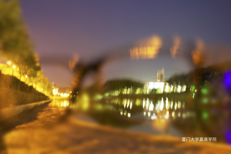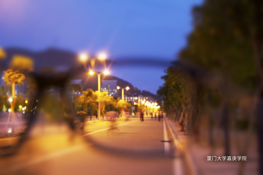 夜色靜悄悄的來,嘉庚穿上了華麗麗的晚禮服,她的嫵媚驚艷了我的雙眼。穿梭在校園中的學(xué)生,是畫龍點(diǎn)睛般的點(diǎn)綴