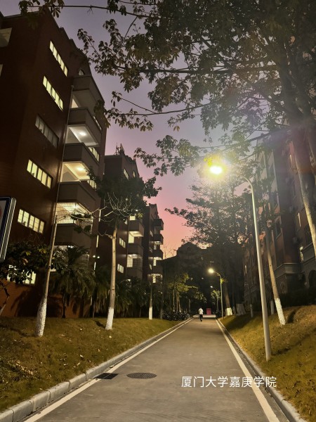 路燈灑下暖光,兩側(cè)宿舍樓燈火零星,樹(shù)影斑駁。一人獨(dú)行,小徑延伸向遠(yuǎn)方,糅合靜謐與煙火,滿是青春余韻 。