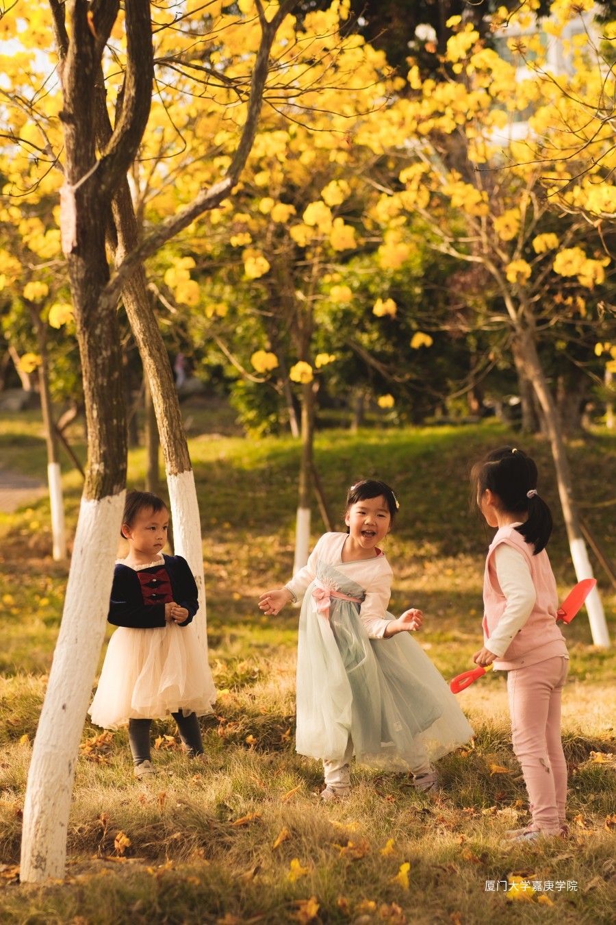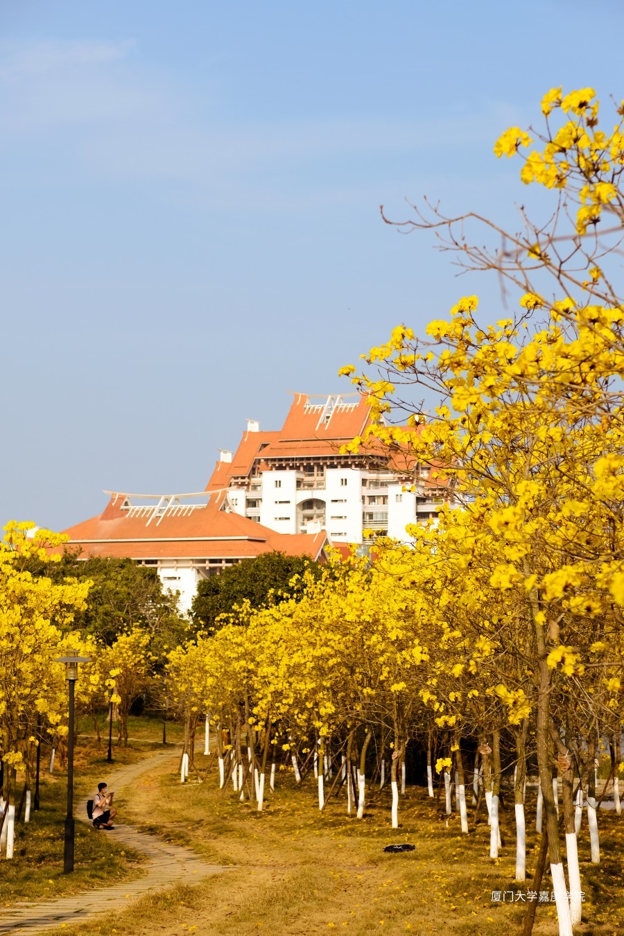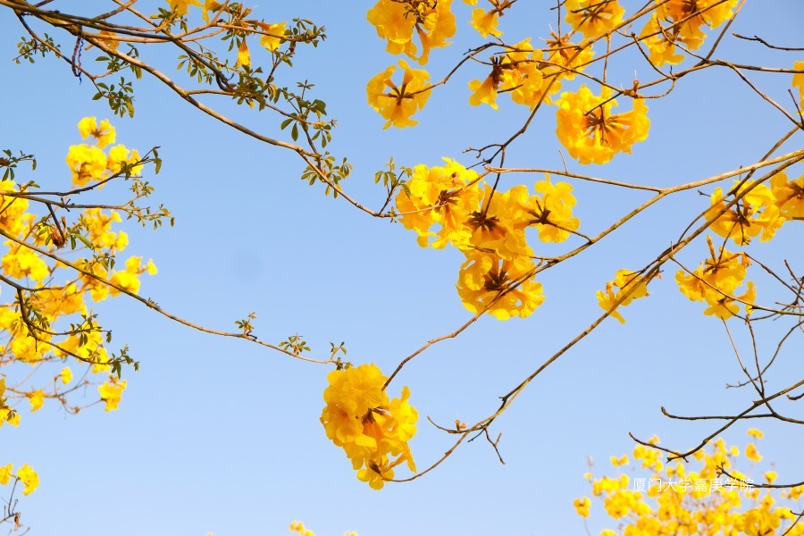 用蹣跚的步子繞著黃花風(fēng)鈴木葉走,