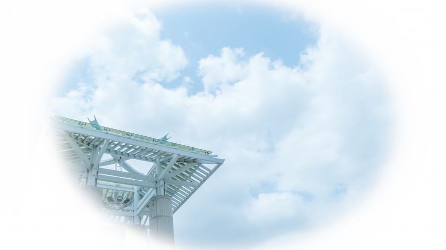藍(lán)天,白云,拱頂,飛鳥(niǎo),琉璃瓦……