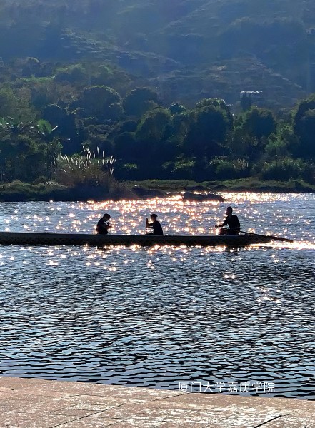 棲霞湖里,學(xué)生劃船,青春與波光共漾。