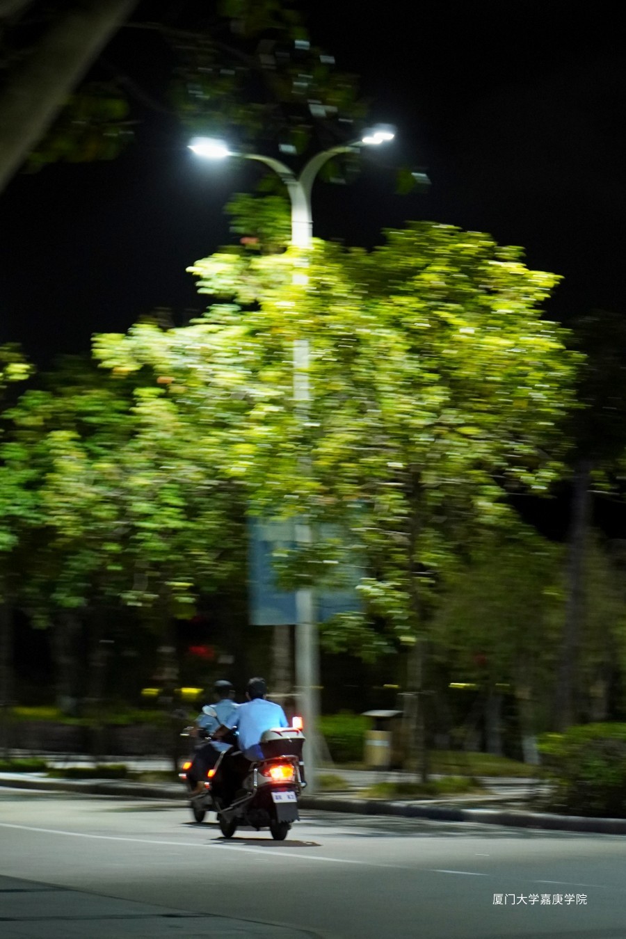 夜深了,你卻飛馳在校園的各個(gè)角落。紅亮的尾燈、湛藍(lán)的制服,讓夜路里的獨(dú)行者不再孤單。